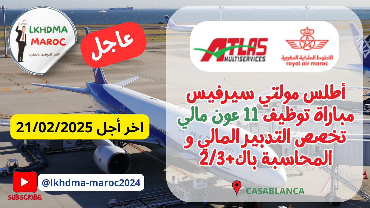 Atlas Multiservices, Filiale Royal Air Maroc Recrute 11 agents comptables et Financiers